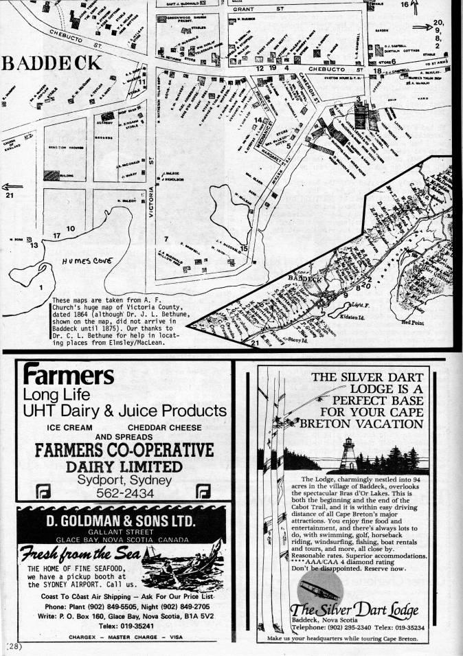 .'%'''' BADDECK Farmers Long Life UHT Dairy & Juice Products ICE CREAM CHEDDAR CHEESE AND SPREADS FARMERS CO-OPERATIVE DAIRY LIMITED Sydport, Sydney ra 562-2434 [d D. GOLDMAN & SONS LTD. GALLANT STREET GLACE BAY, NOVA SCOTIA. CANADA THE HOME OF FINE SEAFOOD, we have a pickup booth at the SYDNEY AIRPORT. Call us. Coast To C6ast Air Shipping - Ask For Our Price Hist Phone: Plant (902) 849-5505, Night (902) 849-2705 Write: P. O. Box 160, Glace Bay, Nova Scotia, BlA 5V2 Telex: 019-35241 CHARGEX - MASTER CHARGE - VISA ;28) THE SILVER DART LODGE IS A PERFECT BASE FOR YOUR CAPE 'BRETON VACATION i The Lodge, charmingly nestled into 94 acres in the village of Baddeck, overlooks the spectacular Bras d'Or Lakes. This is both the beginning and the end of the Cabot Trail, and it is within easy driving distance of all Cape Breton's major attractions. You enjoy fine food and entertainment, and there's always lots to ij do, with swimming, golf, horseback ' riding, windsurfing, fishing, boat rentals and tours, and more, all close by. Reasonable rates. Superior accommodations. ****AAA/CAA 4 diamond rating Don'tJjts'iappointed. Reserve how. Baddeck, Nova Scotia '**??'>' Telephone: (902) 295-2340 Telex: 019-35234 Make us your headquarters while touring Cape Breton,
