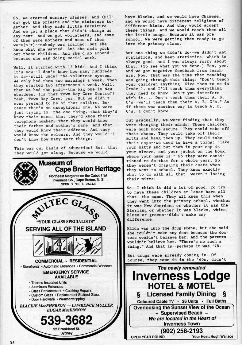 • Margaret Neil James MacNeil—A Love Story • A Visit with Winston Ruck, Steelworker • Murdena Marshall: Mi'kmaq Godparenting • Clive Doucet: "Philibert Goes to Heaven" • Edith Pelley, William Davis's Daughter • From "Cape Breton Captain"—Our New Book! • Peter Buffett and the Shark • "Catherine McPherson's Inn" on a Richmond County Road • Gladys Ross: How I Got My Nickname • William D. Roach, Woodcarver from Petit Etang