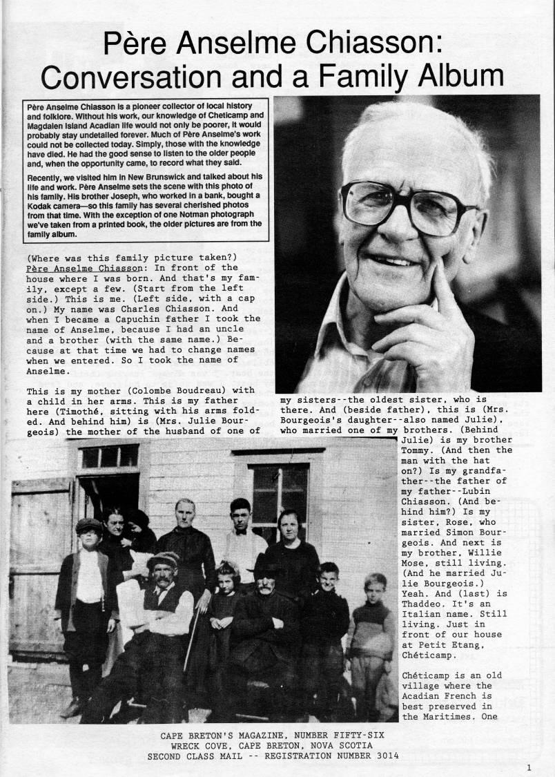 Page 1 - Pere Anselme Chiasson: Conversation and a Family Album